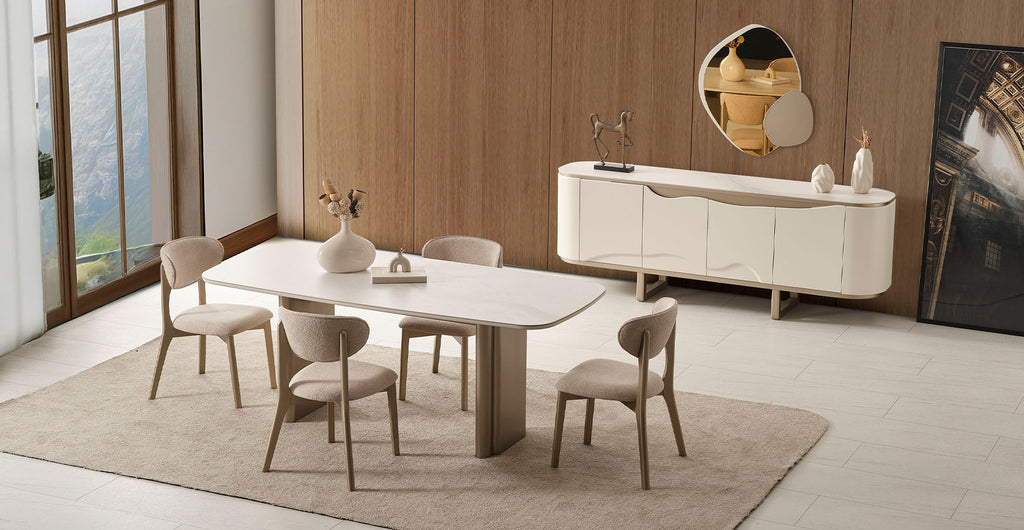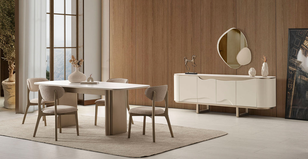 - Takım içeriği Masa, Aynalı Konsol, 6 adet Sandalye'den oluşmaktadır.